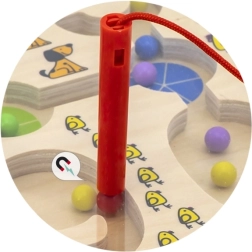 Tartalmaz egy mágneses tollat, amely megkönnyíti a gyöngyök mozgatását a pályákon, fejlesztve a finommotoros készségeket.