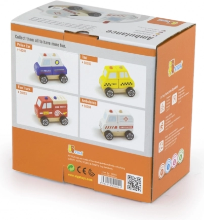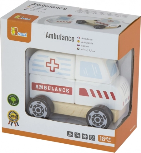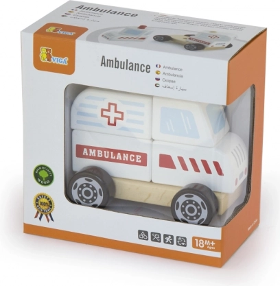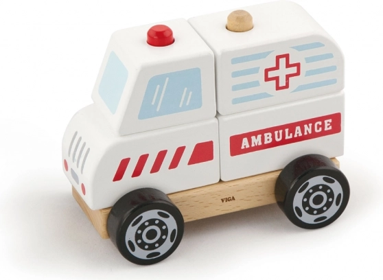 Ez a fa mentőautó remek ötvözete a kirakónak és a guruló autónak. A gyerekek az egyes darabokat mentőautóvá állíthatják össze, majd a simán forgó kerekeknek köszönhetően élvezhetik a gurulást. A masszív fa, a minőségi festékek és a lekerekített élek biztonságos játékot és hosszú élettartamot biztosítanak.
