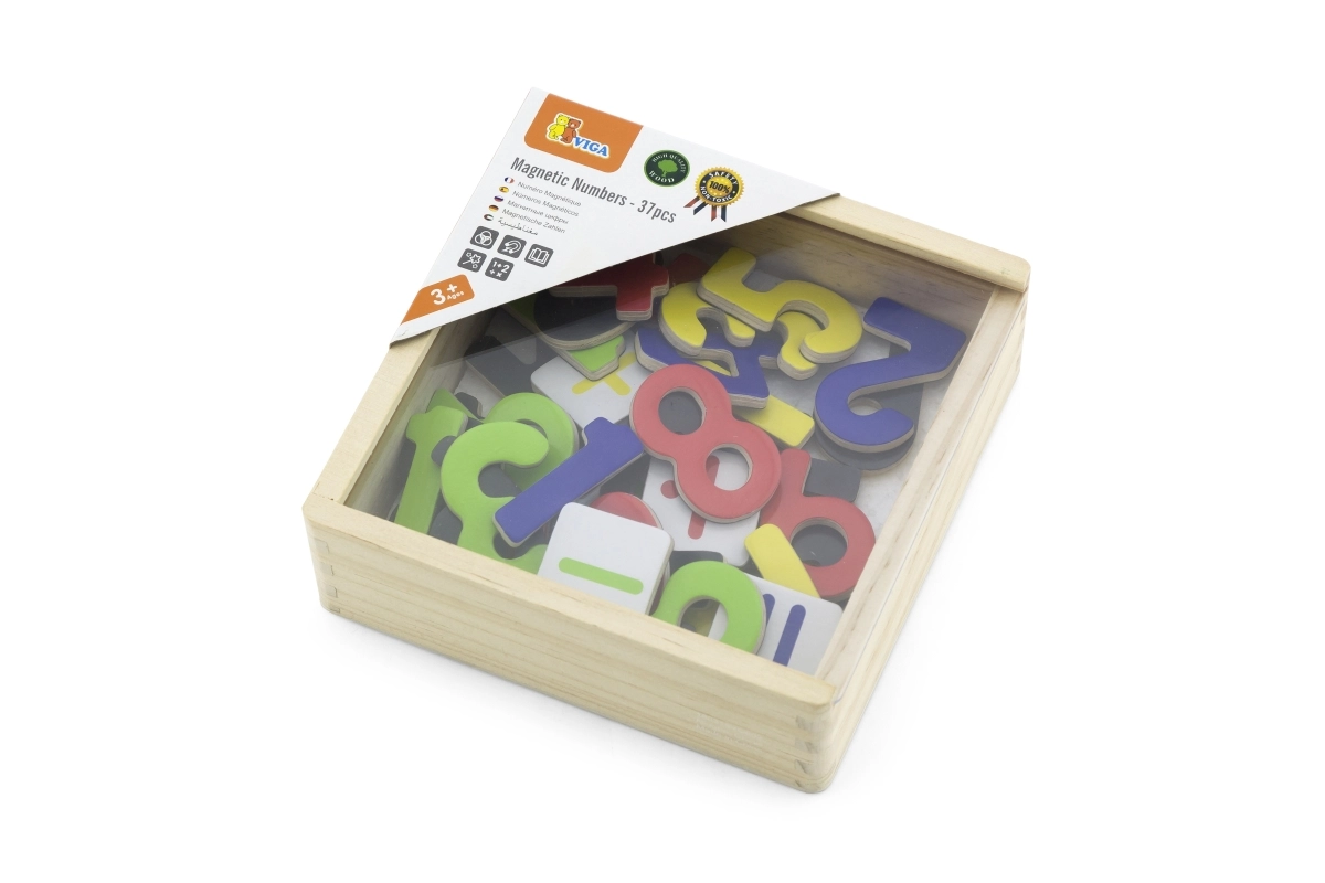 37 elemet tartalmaz – számjegyeket és matematikai szimbólumokat –, amelyek a mágneses rétegnek köszönhetően megbízhatóan tapadnak táblára vagy hűtőre. A masszív, többrétegű fa felépítés és a sima, lakkozott felületek hosszú élettartamot és kényelmes fogást biztosítanak a kis kezeknek.