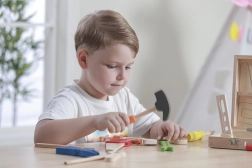 Kalapács, fűrész, villáskulcs, csavarhúzó és további színes szerszámok ösztönzik a kreatív játékot, fejlesztik a finommotorikát és a koordinációt.