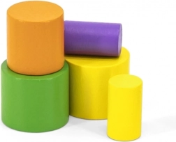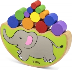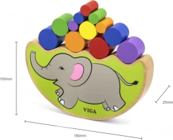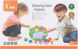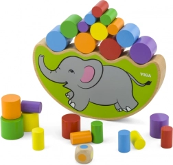 A domború elefánt-alap és a különböző méretű hengerek segítik a gyerekeket az érzékeny egyensúlyozásban és a pontos pakolásban.