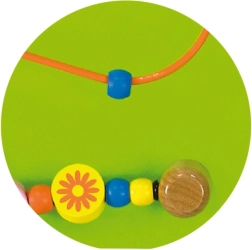 A színes gyöngyök a hajlított dróton támogatják a finommotorikát, a koncentrációt és az ujjak mozgásának folyamatosságát.