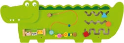 Fedezze fel a helytakarékos, szórakoztató és fejlesztő játékot – a krokodil fali tábla több tevékenységet egyesít kompakt egységben. A gyerekek 3 labirintusban mozgathatják a formákat, edzhetik ujjaikat a drótos gyöngyvezetőn, és képeket állíthatnak össze a forgatható hasáb-kirakón. A színes kivitel és a barátságos dizájn azonnal játékra hív.