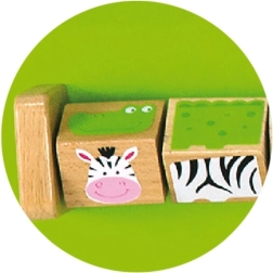 Három hasábon lévő állatillusztrációkat forgatva rakják ki a gyerekek a helyes képet – fejlődik a logika, a türelem és a vizuális észlelés.