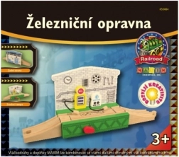 Minden kis mozdonyt időnként meg kell javítani. A javítóműhelyben gondoskodnak a jó műszaki állapotról. Itt megállhatnak a mozdonyok meghibásodások és hibák esetén. A piros kar elfordítása után a sín megemelkedik, és a mozdony magától elindul. Méretek: kb. 31 cm × 8 cm × 13 cm, a felhajtókkal együtt. A csomag tartalmazza a felhajtókat. A Maxim fa vonatpályái és mozdonyai más, a piacon kapható fa vonatpályákkal kombinálhatók. Ajánlott életkor: 3+.