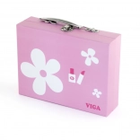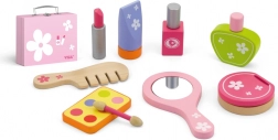 Ez a fa kozmetikai készlet bőröndben örömet szerez a gyerekeknek a felnőttek utánzásával, miközben teljesen biztonságos. Minden elem színes, kellemes fogású, és masszív, hordozható bőröndben kapott helyet, így könnyű elpakolni és magunkkal vinni.