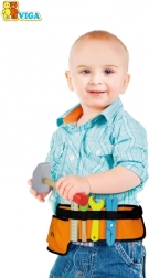 A fa szerszámokkal ellátott derékszíj tökéletes kiegészítő minden kis ezermester számára. Ez a derékszíj különféle fa szerszámokkal van felszerelve, beleértve a kalapácsot, csavarkulcsot, csavarhúzót, mérőszalagot, csavarokat és anyákat, valamint fogót. Kiválóan alkalmas a képzeletbeli szerelési munkálatokhoz és játékhoz.
