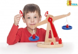 A Viga fa egyensúlyi mérlege két, zsinóron függő kék tállal rendelkezik, és hat, különböző méretű piros súlyt tartalmaz. Színes kialakításának és biztonságos felületkezelésének köszönhetően rengeteg szórakozást nyújt a gyerekeknek. Úgy tervezték, hogy ösztönözze a gyerekeket a képzelet és a fantázia használatára a boltos szerepjáték során, ami segít megérteni a alapvető matematikai fogalmakat és az egyensúly értékét.