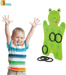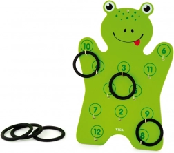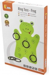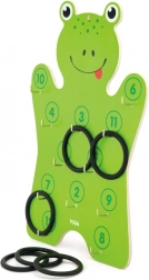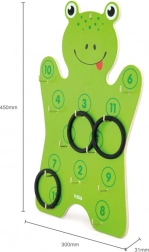 A csomag tartalma egy béka alakú fa tábla és 6 karika – csak bontsd ki, és már kezdődhet is a dobálás.