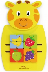 - Zsiráf dizájn gyümölcsökkel festett puzzle-ökkel, amelyek a gyerekek tologathatnak.