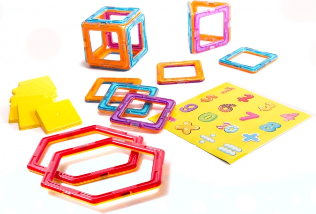 Az egyetlen készlet számos lehetőséget kínál – különböző formájú mágneses elemek lehetővé teszik 3D-s vagy sík formák létrehozását, mindezt az erős mágnesek révén.