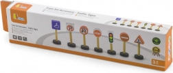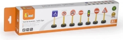 Ez a memóriát és tanulást fejlesztő játék 7 különböző fa közlekedési táblát tartalmaz, amelyek segítenek a gyerekeknek elsajátítani a közúti közlekedés alapvető szabályait. A játék ideális 3 éves kortól, és tökéletesen kiegészíti bármely építőkészletet vagy vasúti pályát.