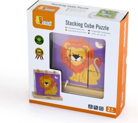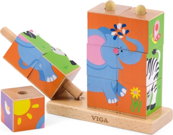 A Viga Safari fa felhúzható kockák időtálló játék, amely természetes módon segíti a gyerekeket a játékos tanulásban. A kilenc, gondosan megmunkált kocka a stabil alapon négy színes állatmotívum kirakását teszi lehetővé. A billenthető tüskéknek köszönhetően a kockák könnyen forgathatók, így a gyerekek gyorsabban megtalálják a megfelelő darabot.