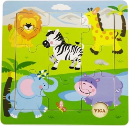 Ez a safari mintás fa puzzle örömet nyújt az összeillesztésben, miközben támogatja a gyerekek természetes fejlődését. A nagy, könnyen megfogható elemek a kis kezekhez igazodnak, és segítik a koncentráció, a formák és az állatok felismerésének gyakorlását.