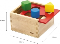 A formabedobóval való játék felfedezésre, válogatásra és a formák összehasonlítására ösztönöz. A tartós faanyagnak köszönhetően a játék stabil és kellemes tapintású. Remekül kiegészíti a Montessori tevékenységeket és támogatja az önálló játékot.