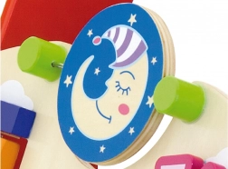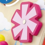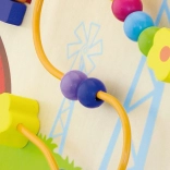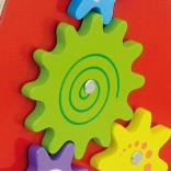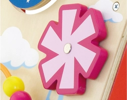 Forgó elemek, csúszkáló állatkák, gyöngyös hurok és szélforgó fejlesztik a finommotorikát, a türelmet és az ok-okozati összefüggések megértését.
