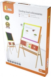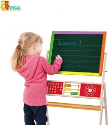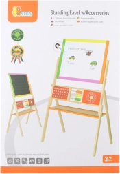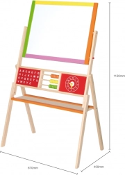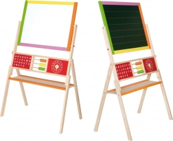 Ez az univerzális fa tábla ideális három év feletti gyermekek számára a számos funkciójának köszönhetően. Mágneses felületet kínál nyomásmentes filctollakhoz, és krétás felületet hagyományos íráshoz és rajzoláshoz. A tábla szórakoztató és oktatási elemeket is tartalmaz: