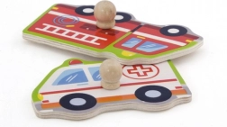 A fa fogantyúk révén a gyerekek megtanulják helyesen kezelni az egyes darabokat és felismerni a közlekedési eszközök hangjait.
