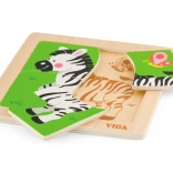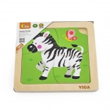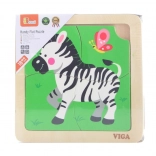 A VIGA márkájú zebra mintás fa puzzle ideális didaktikai játék gyermekek számára, amely fejleszti a motoros készségeket és a kognitív gondolkodást a játékos tanulás által.