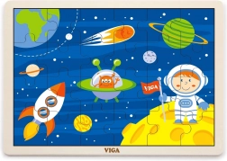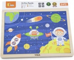 A VIGA fa űr témájú kirakója már egészen kicsi kortól örömet szerez a felfedezésben. A rakétát, asztronautát és bolygókat ábrázoló színes illusztrációk természetes módon támogatják a formák és színek felismerését, valamint a kéz–szem koordináció fejlődését. A kirakott puzzle mérete kb. 27,5 × 20 cm, így jól elfér az asztalon vagy a gyereksarokban.