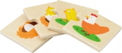 Tartós fából készül, sima felülettel, és biztonságos festékekkel van színezve. A tiszta illusztrációknak és a masszív daraboknak köszönhetően a puzzle ideális a kis kezekhez, és tökéletes a mindennapi játékhoz otthon vagy az óvodában.