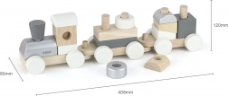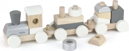 A vonat levehető elemekből és guruló alvázakból áll, így a kicsi építők nemcsak az építést, hanem a vonatozást is élvezhetik. Remek ajándék, amely örömet szerez és támogatja a gyermek korai fejlődését.