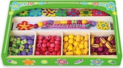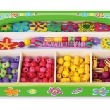 A különböző alakú, köztük virág formájú színes gyöngyök támogatják a fantáziát és a vizuális érzékelést, miközben saját mintákat állítanak össze.