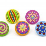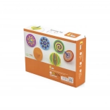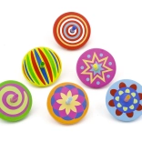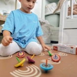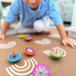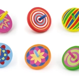Minden pörgettyű egyedi szett színnel és mintával jár, amelyek forgás közben vonzó vizuális hatásokat keltenek.