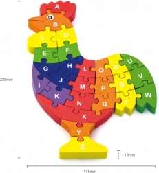 Kezdje el a szórakoztató, oktatási utazást a fa 3D puzzle kakassal, amely nemcsak az ábécé tanulását támogatja, hanem fejleszti a finommotorikát és a logikai gondolkodást is. Minden darab az angol ábécé egy betűjével van jelölve, ami segíti a betűk felismerését és a nyelvi készségeket.