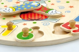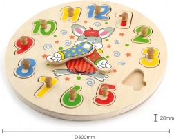 Ez a fa oktató óra a beillesztős kirakót ötvözi az idő tanulásával. A színes, számozott elemek praktikus fogantyúkkal jól illeszkednek a kis gyerekkézbe, és segítenek az 1–12-es számok felismerésében. A kirakás közben a gyerekek gyakorolják a türelmet, a szem–kéz koordinációt, valamint a formák és színek észlelését.