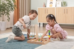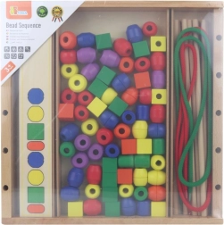 Ez az okos Montessori játék játékos tanulást kínál: a gyerekek a mintakártyák által meghatározott sorrendben fűzik és rakják a gyöngyöket a pálcákra. Szórakoztató módon fejlesztik a szem–kéz koordinációt, a koncentrációt és a türelmet, miközben elmélyítik a színek, formák és sorozatok ismeretét.