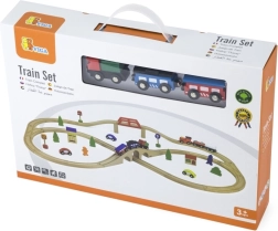 Építsétek meg a saját sínvilágotokat! A fa vonatpálya a pályák teljes hosszával és elrendezésével lehetővé teszi változatos útvonalak építését, hidak leküzdését, valamint a közlekedés és a város összekapcsolását a mellékelt kisautók és kiegészítők segítségével. A minőségi fa kivitel tartós és kellemes fogású.