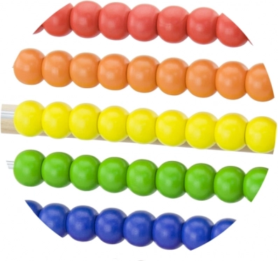 Tíz sor élénk színű gyöngy támogatja a vizuális észlelést, a válogatást és az első számolási feladatokat.
