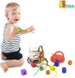 A fűzés támogatja a helyes fogást, a szem–kéz koordinációt és a koncentrációt. Ideális óvodáskorú gyermekeknek és korai tanuláshoz.