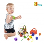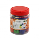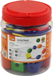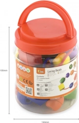 A gyöngyök tartós műanyag dobozban, tetővel kerülnek tárolásra, ami megkönnyíti a hordozást és az elpakolást. A készlet játékos tanulást kínál otthon és óvodában, és remek kiegészítő a Montessori tevékenységekhez.