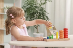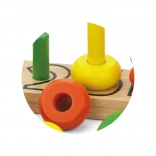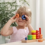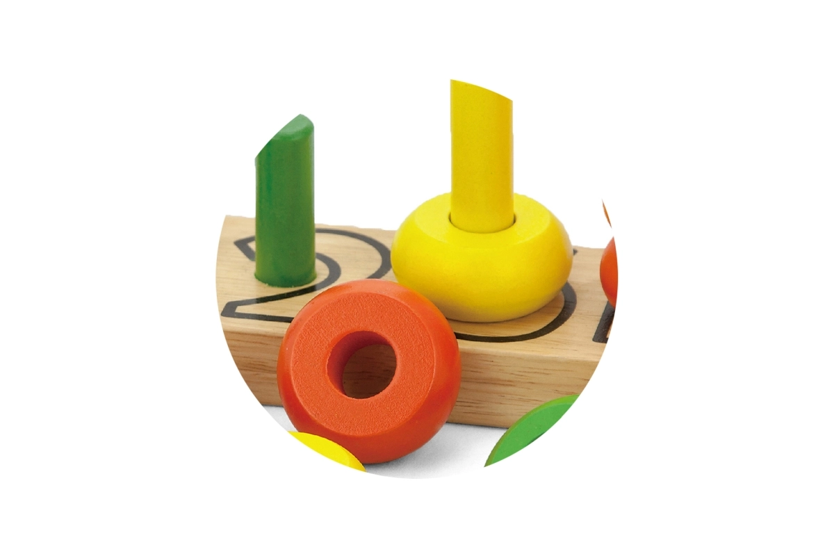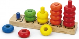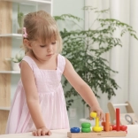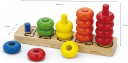 A színes gyűrűk a rudakon játékosan, lépésről lépésre segítik a gyerekeket a színek felismerésében, a válogatásban és a számolásban.