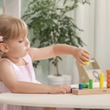 A finoman megmunkált elemeknek és az élénk színeknek köszönhetően a használat kellemes és motiváló. A méretek ideálisak a kisgyermek-kezekhez, a kompakt kivitel pedig jól illik a gyerekszobába és az óvodába is.
