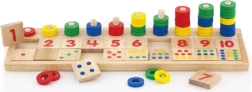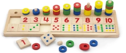 Ez a fa játék nemcsak szórakozást nyújt, hanem kiváló oktatási eszköz is. A gyermekek számozott csempékkel és színes gyűrűkkel tanulhatnak, amelyek támogatják a vizuális és tapintási tanulási képességeket.