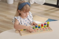 Színes gyűrűk és számozott csempék segítségével a gyermekek fejleszthetik matematikai képességeiket és numerikus gondolkodásukat.