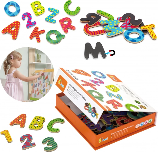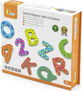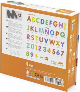 VIGA színes mágneses betűk és számok – fa készlet, 77 darab