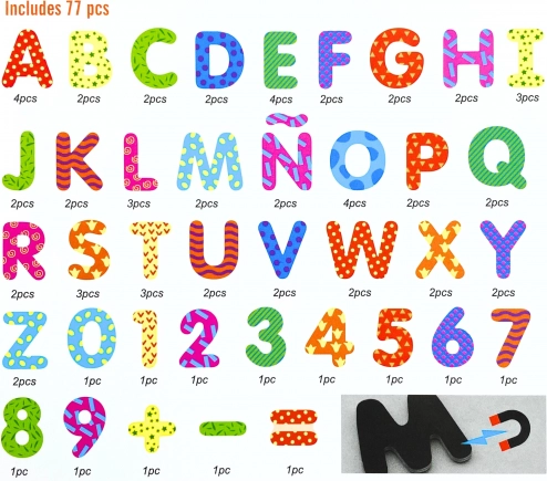 Az elemek megtapadnak a mágneses táblán, hűtőszekrényen vagy más fém felületen. Tökéletes mindennapi gyakorláshoz és szabad játékhoz.