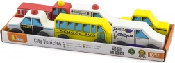 A készlet különböző járműveket kínál, amelyek segítenek a gyerekeknek fejleszteni kreativitásukat és megérteni a városi szolgáltatásokat.