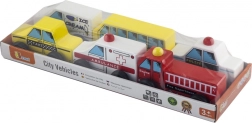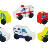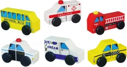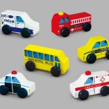 A fából készült játékkocsi készlet ideális kiegészítője a gyerekszobának. Tartalmaz egy iskolabuszt, egy rendőrautót, egy fagylaltos autót, egy taxit, egy tűzoltóautót és egy mentőautót. Minden játékkocsi speciális elemeket kínál, amelyek támogatják az oktatást és motorikus képességek fejlesztését.