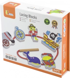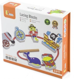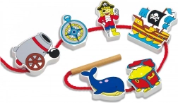 Fedezd fel a kalózkaland varázsát ezzel a minőségi, fűzős fa készlettel! A színes elemek – például kalóz, hajó vagy horgony – alkotásra ösztönöznek, és természetes módon segítik a fogás, a koncentráció és a türelem gyakorlását. A zsinórra fűzésnek köszönhetően a gyerekek fejlesztik pontosságukat és koordinációjukat, miközben remekül szórakoznak.