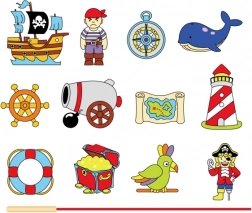 A kalóz, hajó, kincs vagy kormány figurái ösztönzik a fantáziát, és a tanulást izgalmas kalanddá teszik.