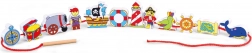 A fa elemek zsinórra fűzése támogatja a pontos fogást, a kéz–szem koordinációt és a türelmet 2 éves kortól.