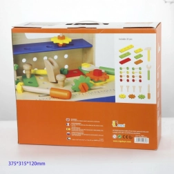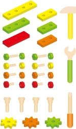Minden alkatrész a gyerekek kezéhez igazodik, és tartós fából készült. A gazdag csavar-, anya- és léckészletnek köszönhetően végtelen kombinációs lehetőség születik, amelyek fejlesztik a fantáziát és a türelmet. A készlet remek önálló játékhoz és közös alkotáshoz a szülőkkel.