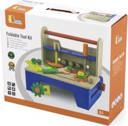 Okos 2 az 1-ben megoldás: a fa hordozó gyorsan stabil munkapaddá alakul, ahol a gyerekek csavarozhatnak, kalapálhatnak és építhetnek.