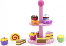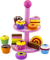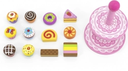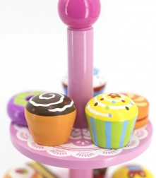 Ez a stílusos, két szintes állványon elhelyezett fa desszertkészlet ideális kávézós, teadélutános vagy „gyerekcukrászdás” szerepjátékhoz. A gondosan kidolgozott, színes fa darabok felfedezésre csábítanak és fejlesztik a szem-kéz koordinációt.