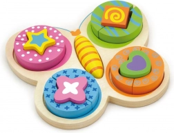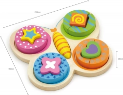 A VIGA márkájú fa pillangós kirakó ideális fejlesztő játék a legkisebbeknek. A színes elemek könnyen megfoghatók, és a precízen marással kialakított széleknek köszönhetően stabilan illeszkednek az alaplapba, így a gyerekek kényelmesen rakhatják ki, zavaró tényezők nélkül.
